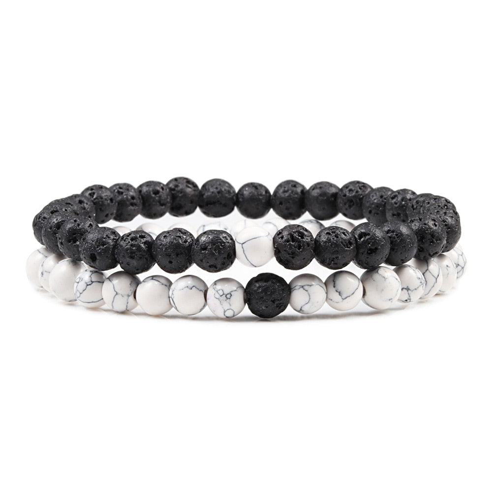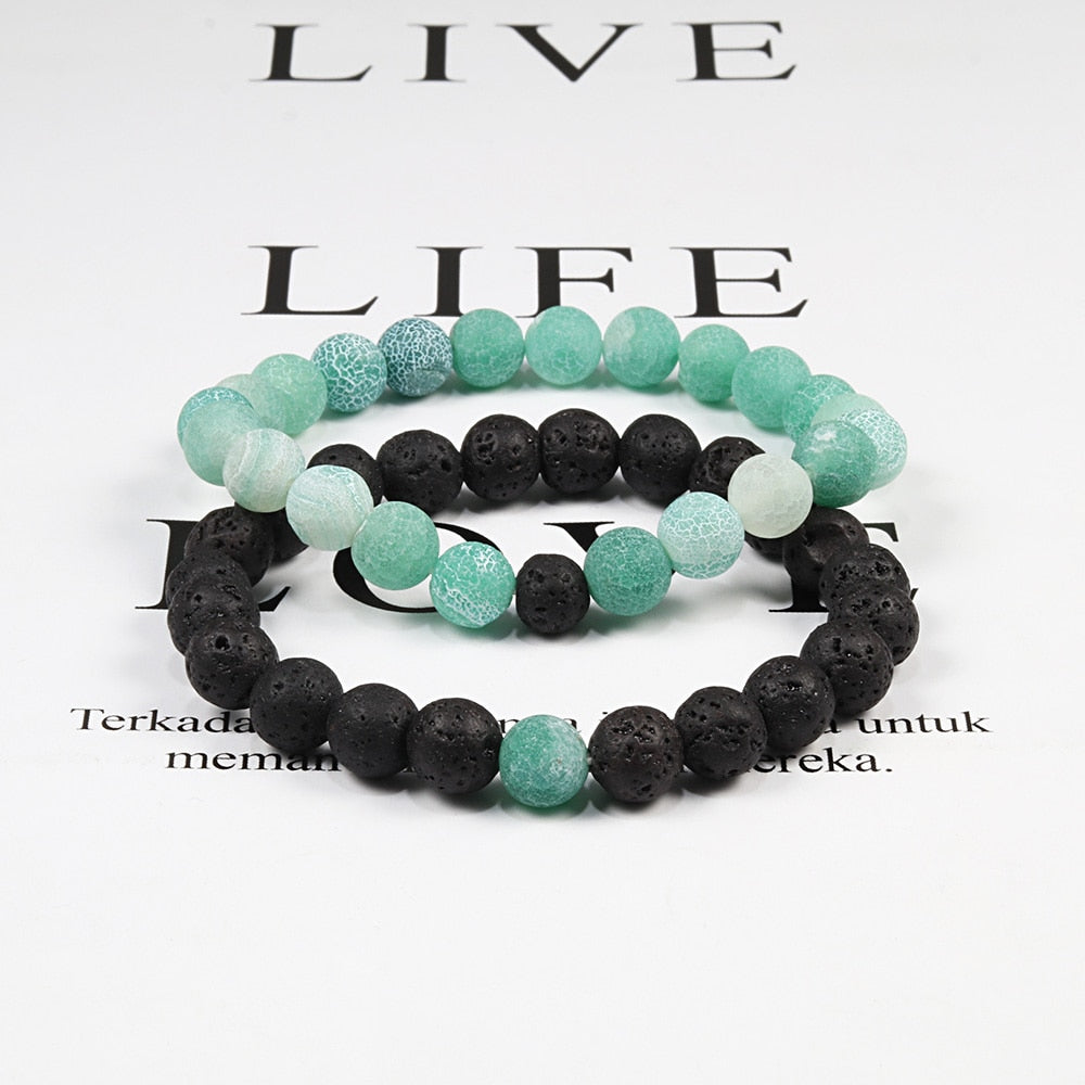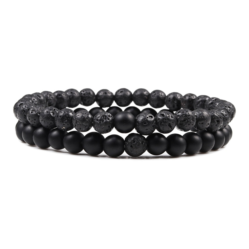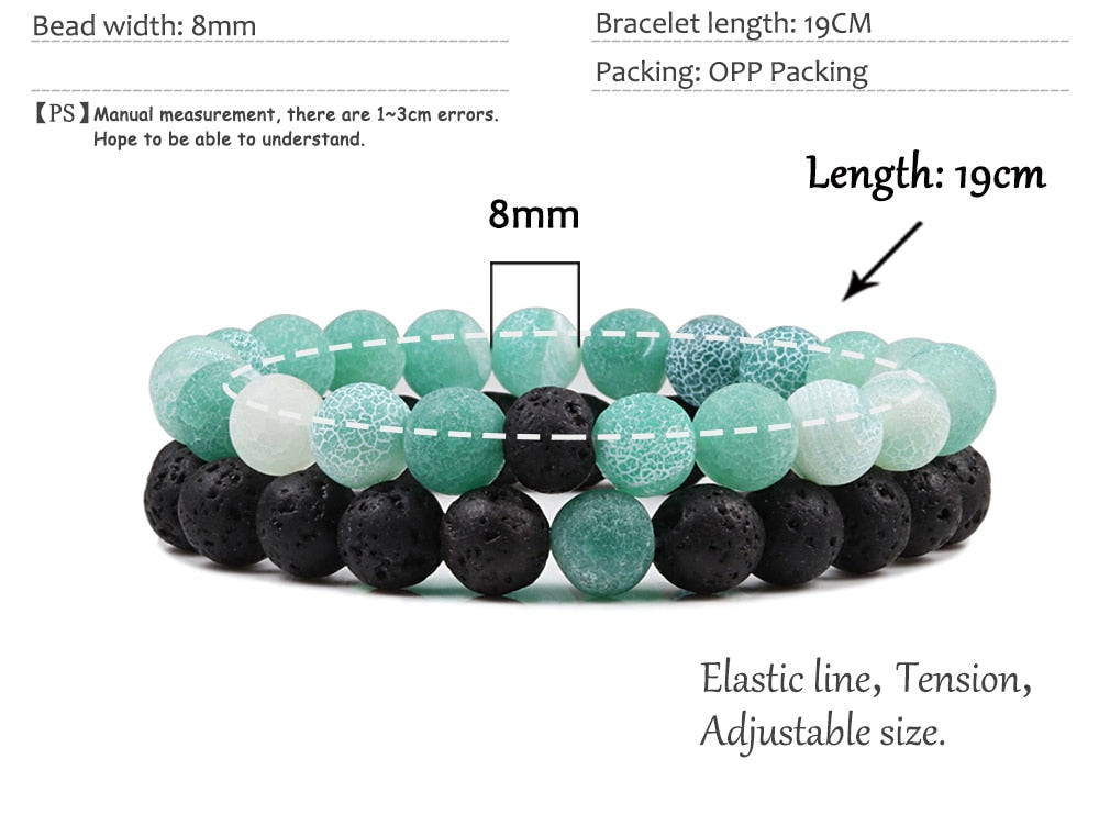 1-2PCS Beaded Bracelets Bangles Set Natural Lava Stone Couples Distance Energy Elastic Rope Men Women Best Friend Jewelry Gift