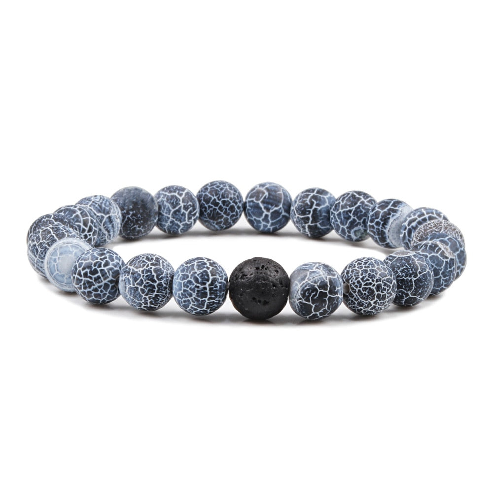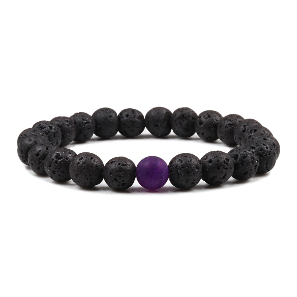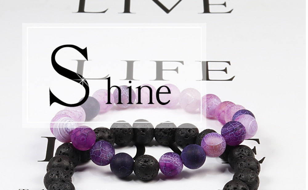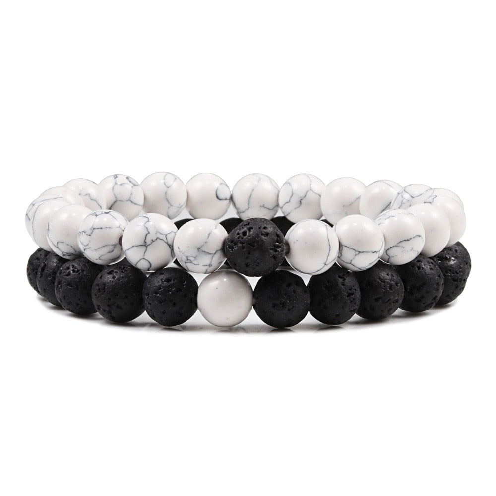 1-2PCS Beaded Bracelets Bangles Set Natural Lava Stone Couples Distance Energy Elastic Rope Men Women Best Friend Jewelry Gift