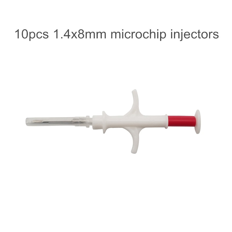 If you choose"x10 1.4x8mm only", we will send you 10pcs 1.4*8mm microchip with syringe only, reader are not included.