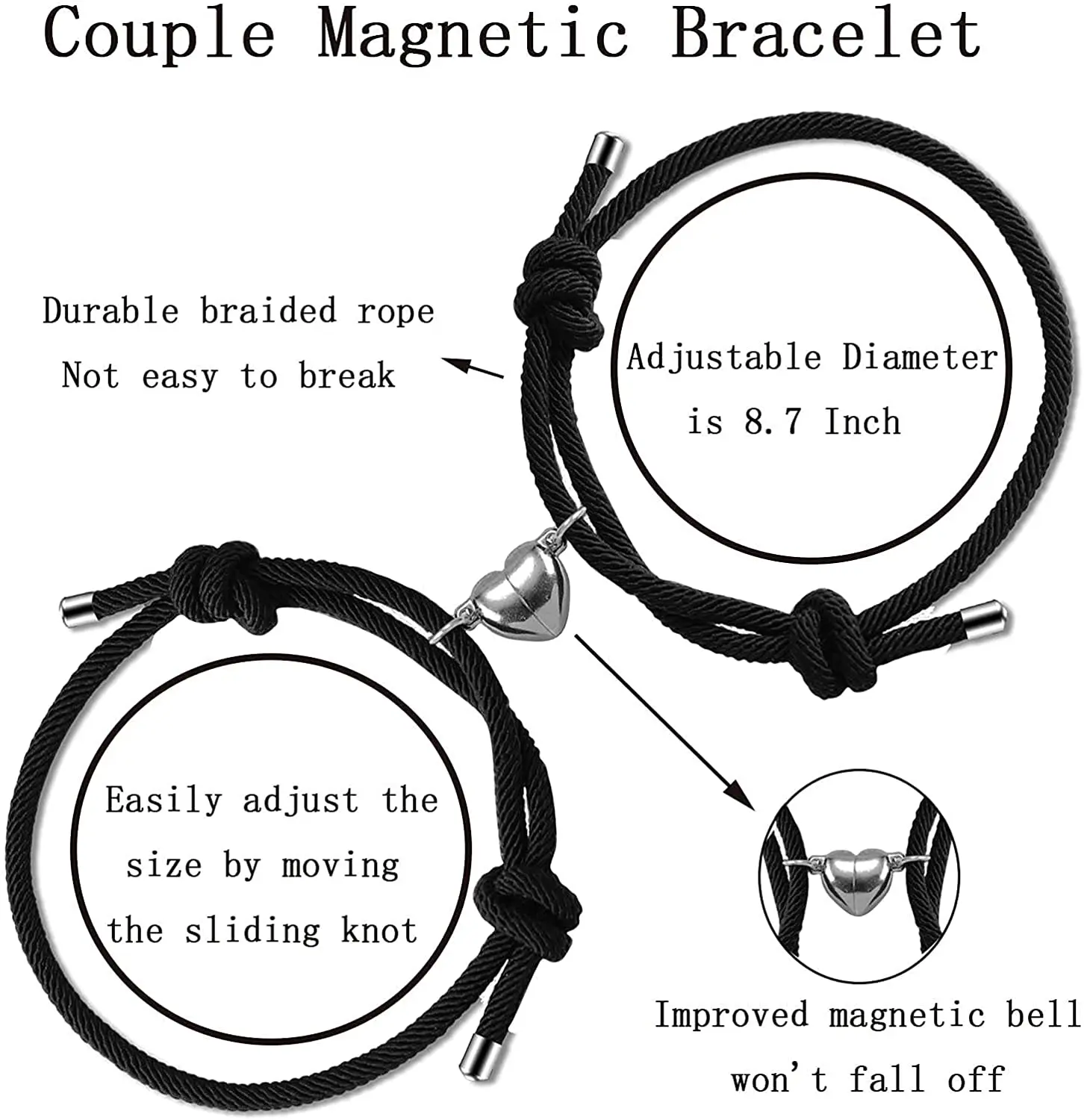 Features: stylish matching, comfortable to wear, two bracelets can attract each other