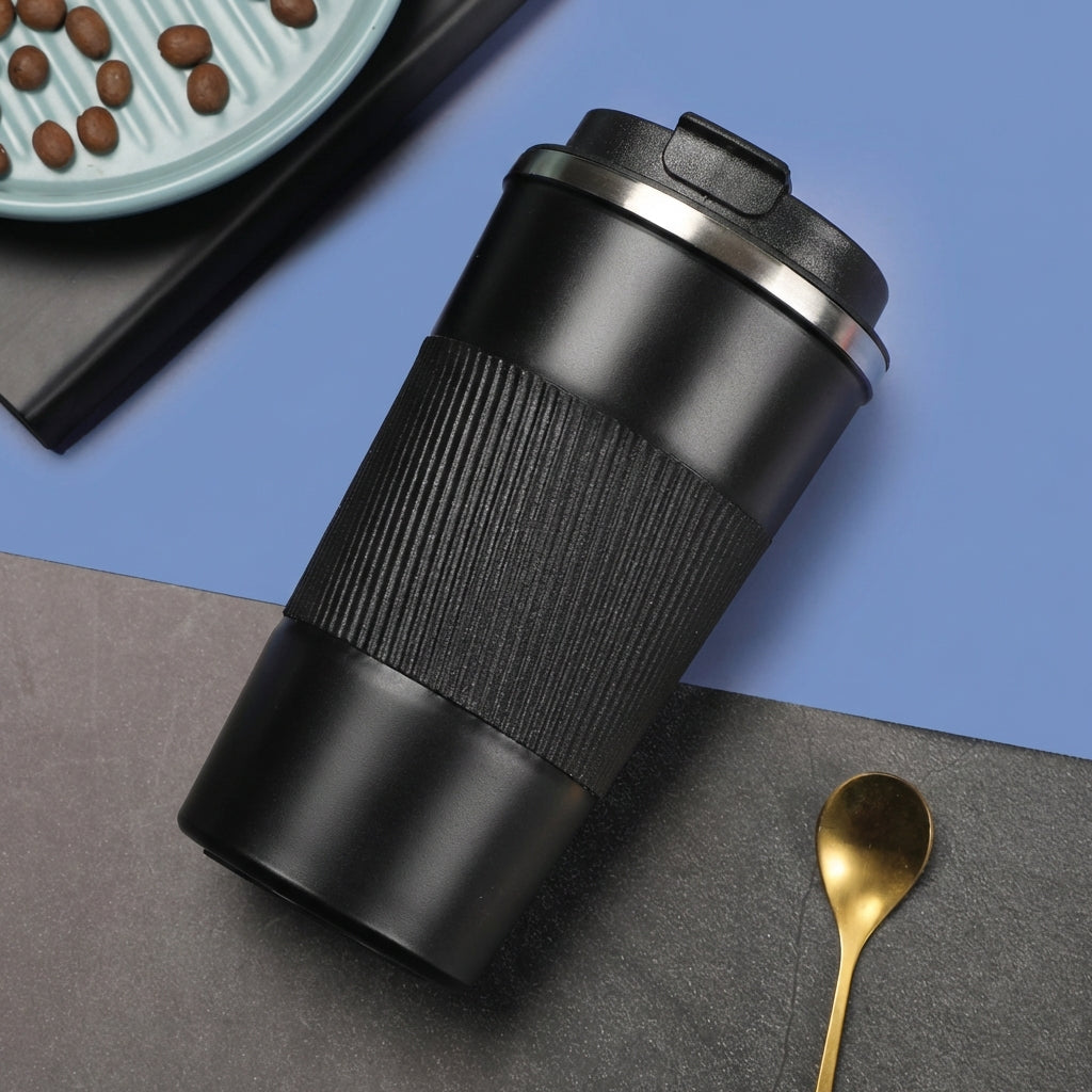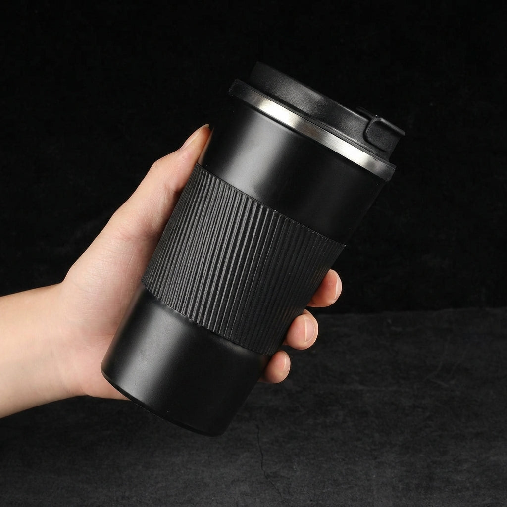 stainless steel coffee cup, leather sleeve coffee cup, car coffee cup, business gift thermos cup, reusable travel cup, straight coffee tumbler, lock lid coffee cup, tea strainer cup, premium gift drinkware, office coffee cup, portable coffee tumbler, corporate gift cup