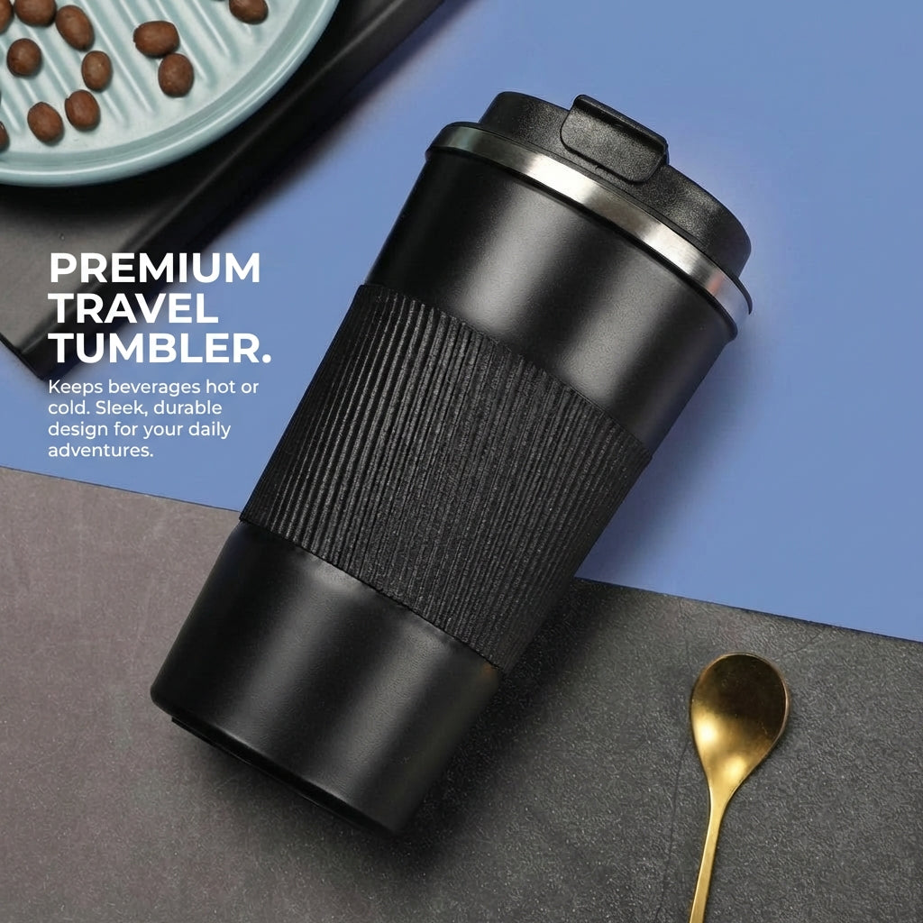 stainless steel cup, coffee cup, leather sleeve cup, car cup, travel tumbler, reusable drinkware, business gift cup, promotional drinkware, office cup, portable cup, straight tumbler, tea strainer cup, premium drinkware, corporate gifting, lifestyle accessory, unisex cup